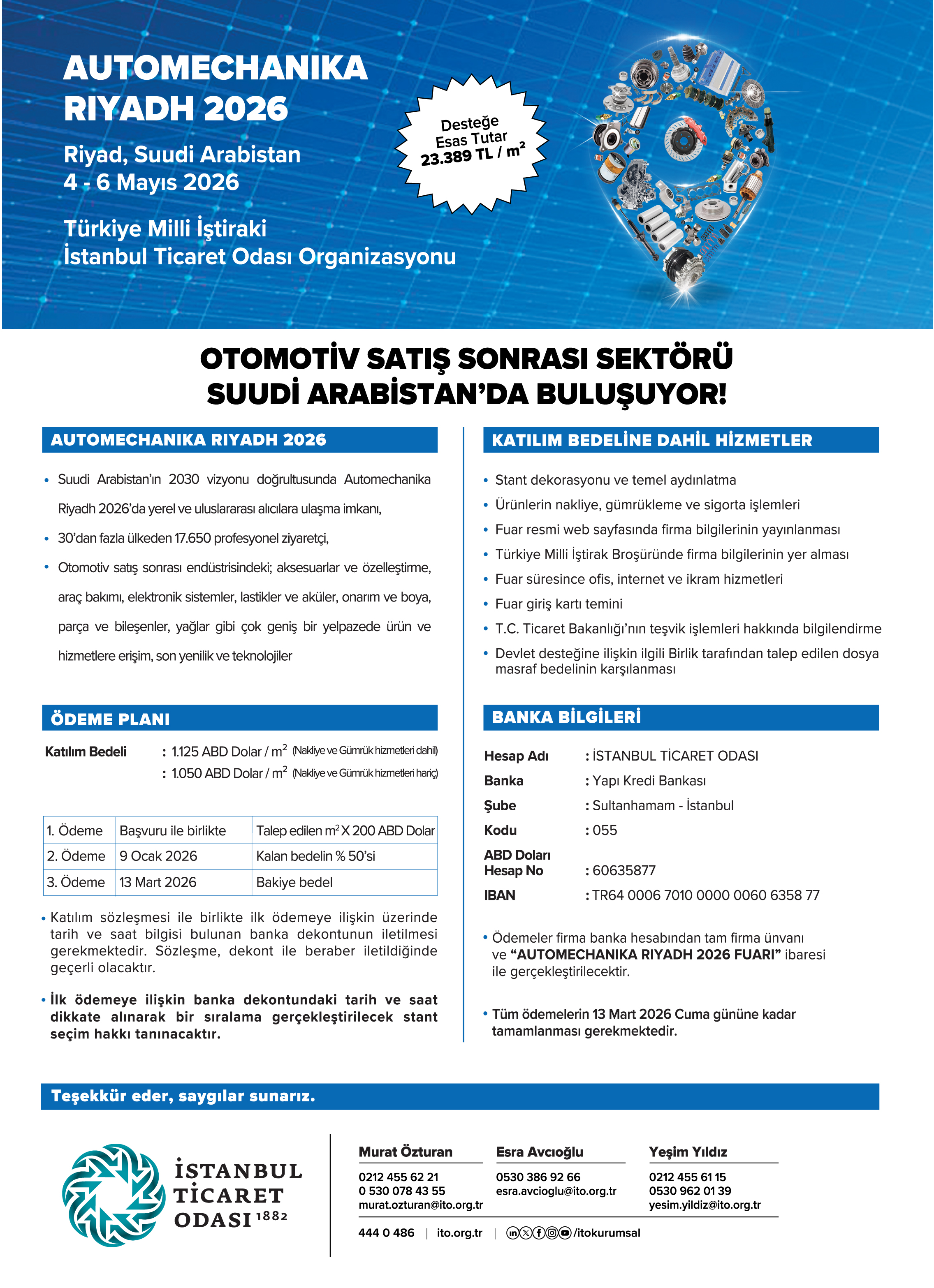 OTOMOTİV ENDÜSTRİSİ EKİPMANLARI VE MALZEMELERİ, OTOMOTİV ENDÜSTRİSİ SATIŞ SONRASI ÜRÜN VE HİZMETLERİ, BATARYALAR VE ELEKTRONİK SİSTEMLER, YAĞLAMA EKİPMANLARI, YEDEK PARÇALAR VE LASTİKLER
