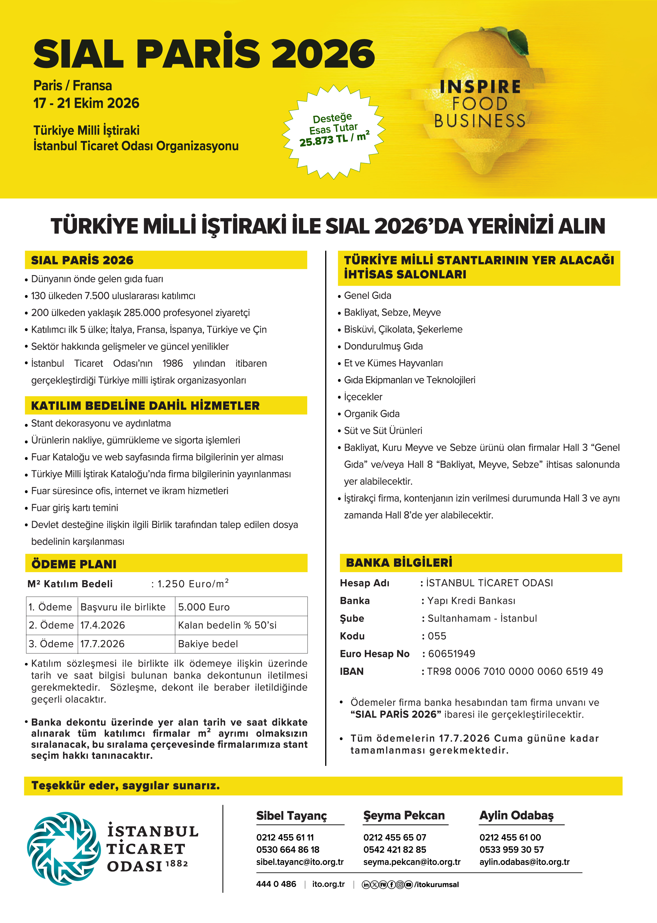 GENEL GIDA, BİSKÜVİ, ÇİKOLATA VE ŞEKERLEME, DONDURULMUŞ GIDA, ET VE KÜMES HAYVANLARI, GIDA EKİPMANLARI VE TEKNOLOJİLERİ, İÇECEKLER, BAKLAGİL, MEYVE VE SEBZE, ORGANİK GIDA, SÜT VE SÜT ÜRÜNLERİ
