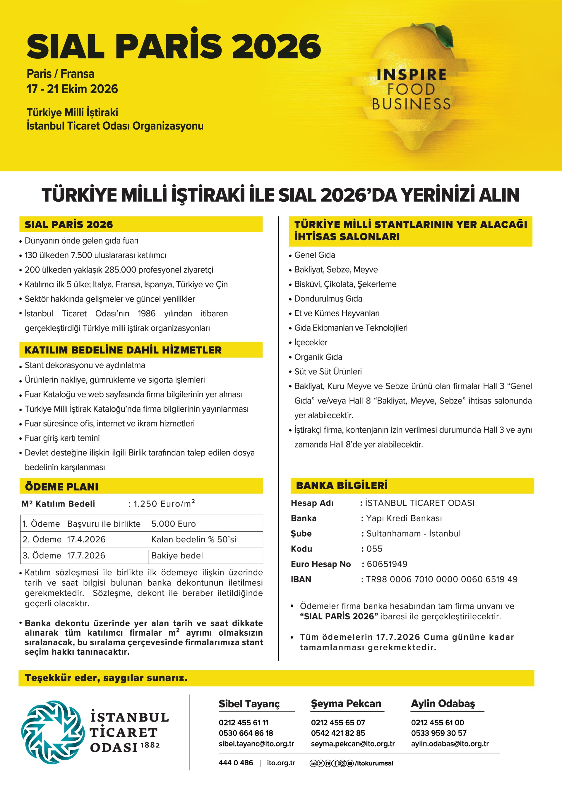 GENEL GIDA, BİSKÜVİ, ÇİKOLATA VE ŞEKERLEME, DONDURULMUŞ GIDA, ET VE KÜMES HAYVANLARI, GIDA EKİPMANLARI VE TEKNOLOJİLERİ, İÇECEKLER, BAKLAGİL, MEYVE VE SEBZE, ORGANİK GIDA, SÜT VE SÜT ÜRÜNLERİ